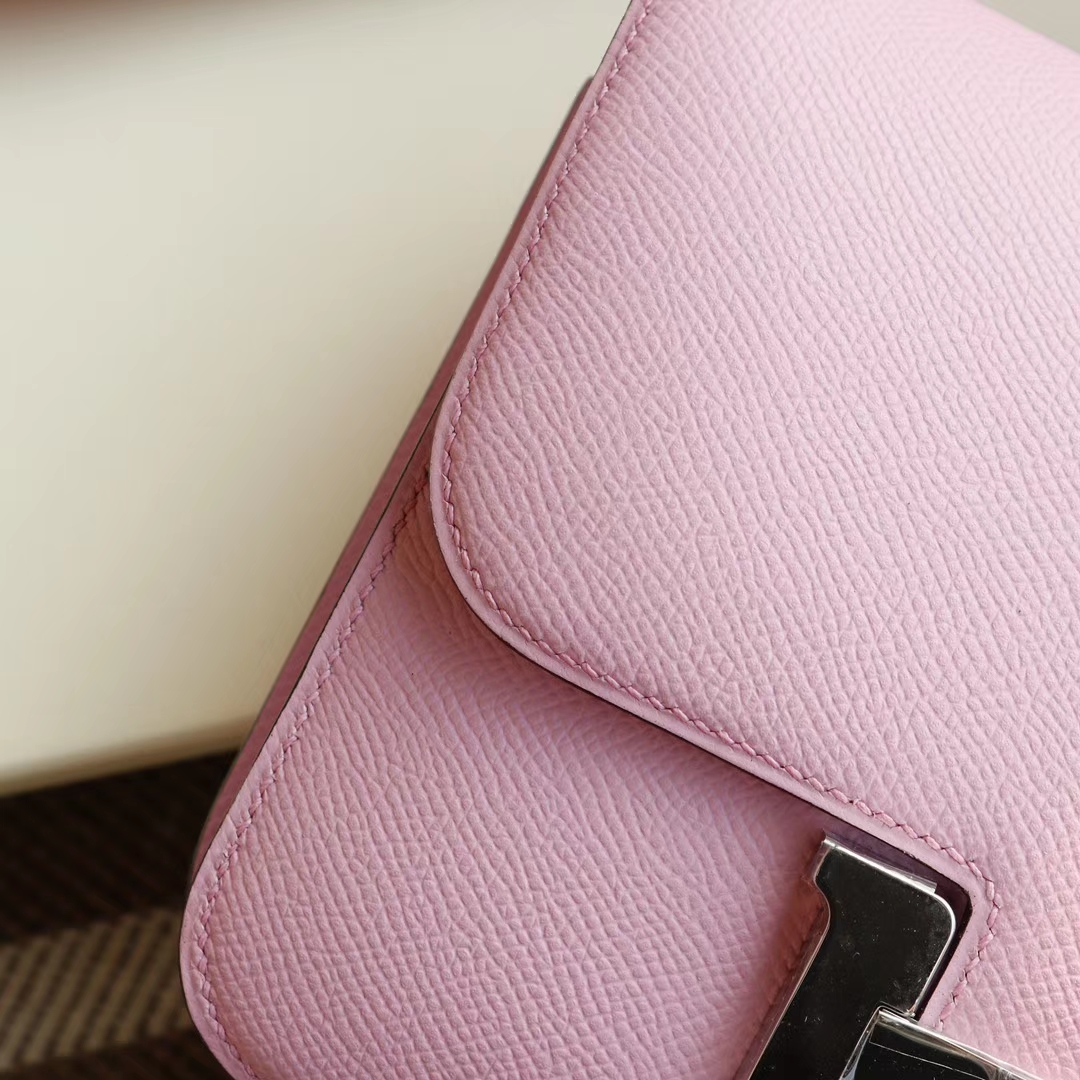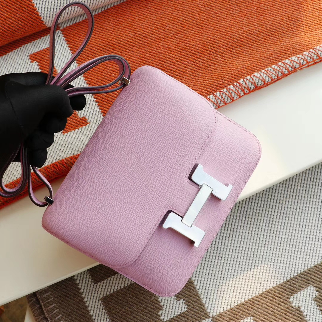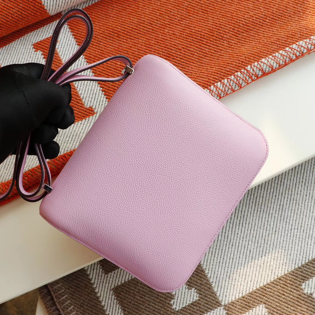 Guangzhou Baiyun Leather Goods City, Hermès, Mallow Purple, Constance 19CM, Stewardess Bag, Original Factory Epsom Leather, Handmade Sewing Craft