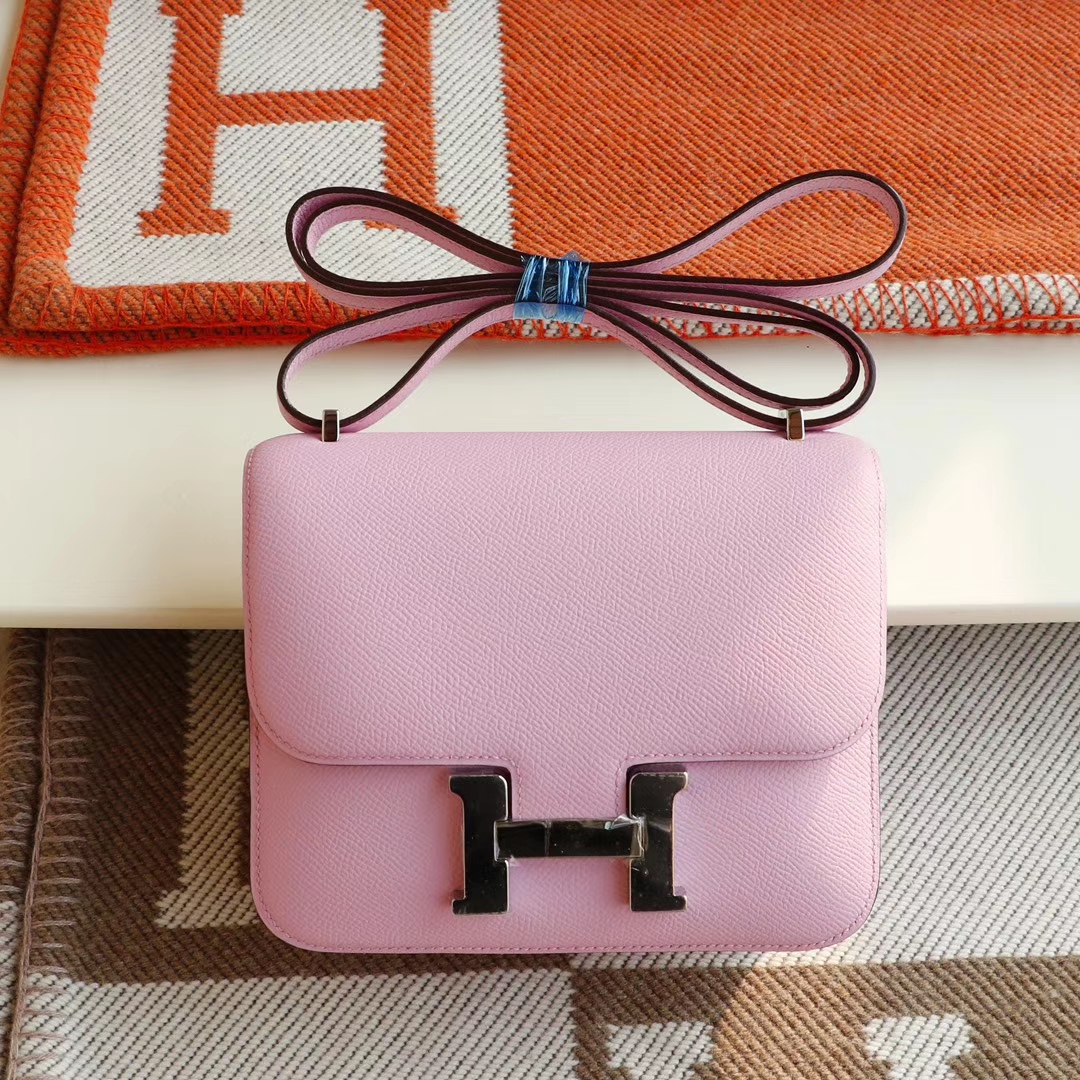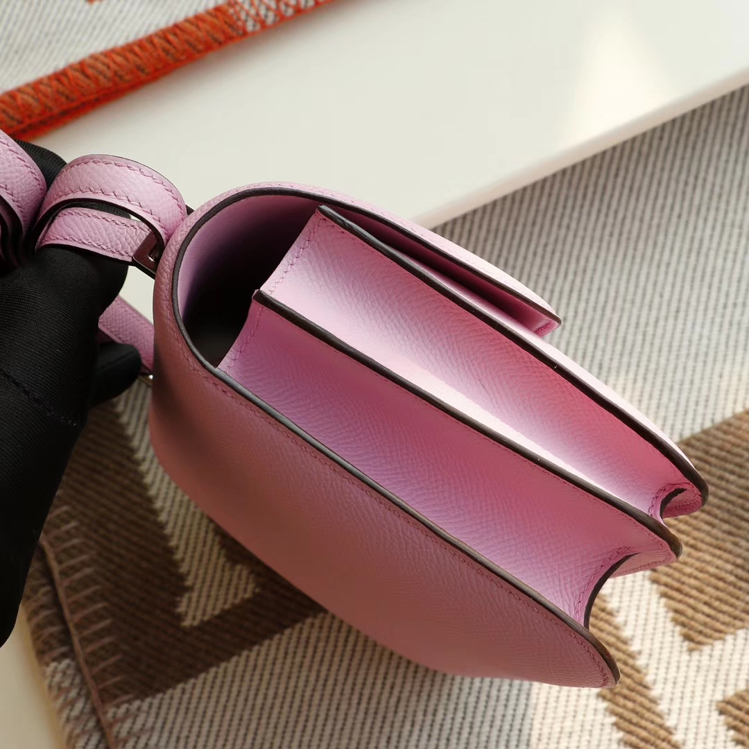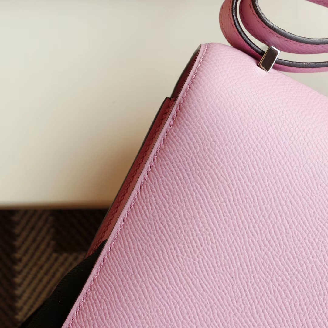 Guangzhou Baiyun Leather Goods City, Hermès, Mallow Purple, Constance 19CM, Stewardess Bag, Original Factory Epsom Leather, Handmade Sewing Craft