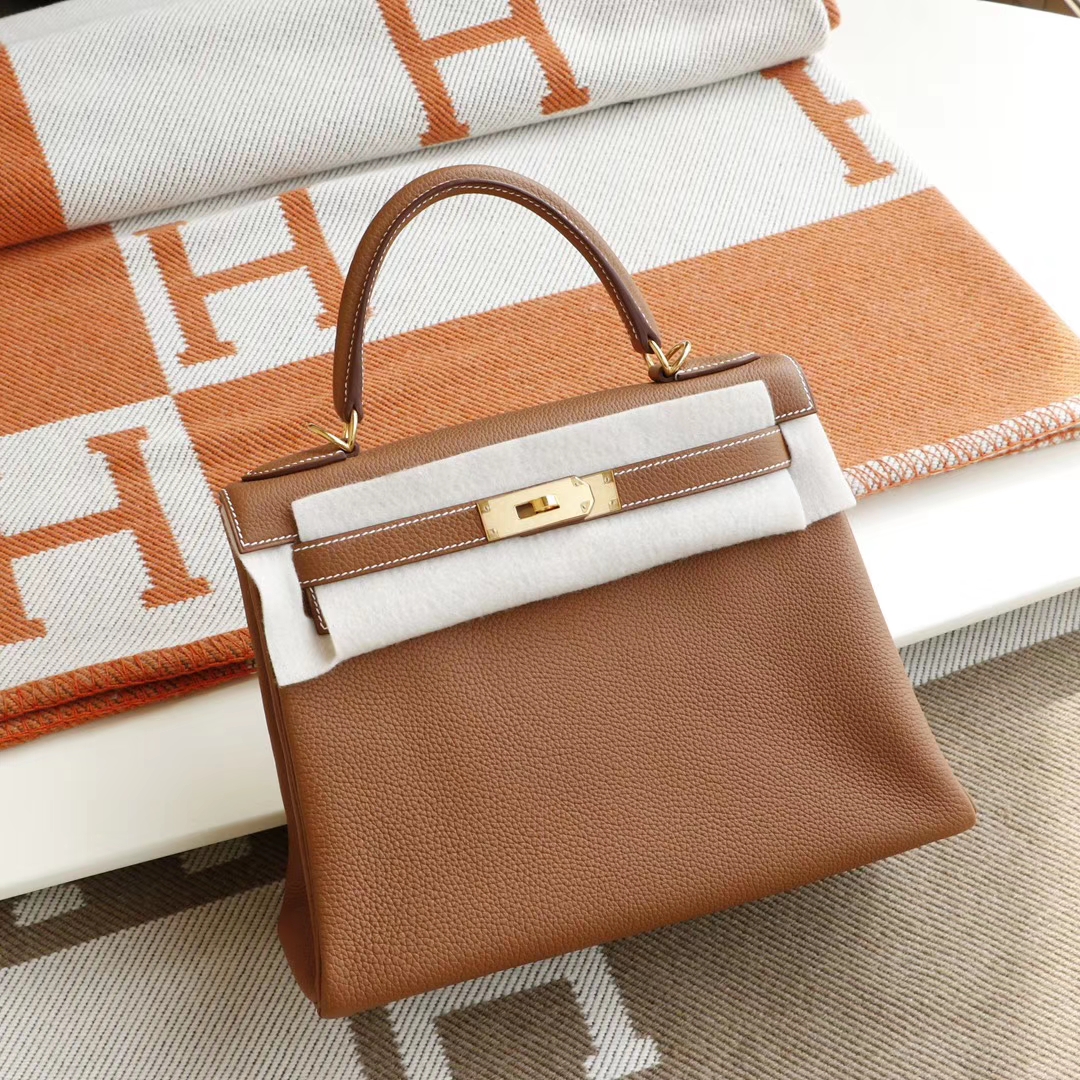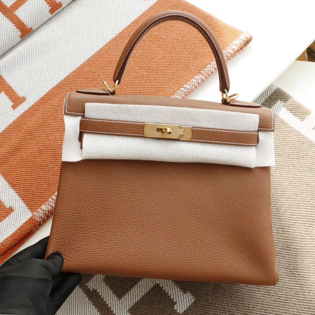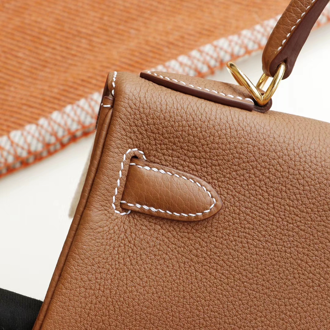 Baiyun Leather City Hermes Gold Brown Kelly 28CM French original factory togo leather Kelly bag hand - stitched craftsmanship