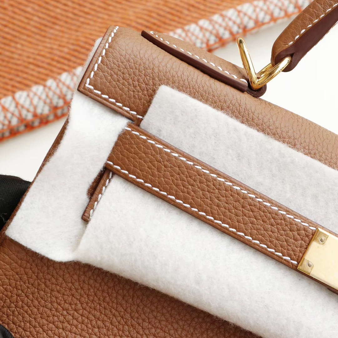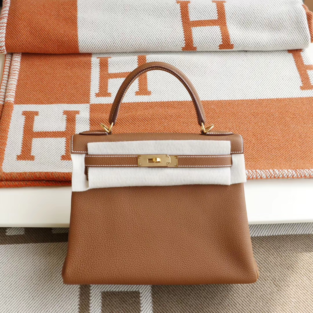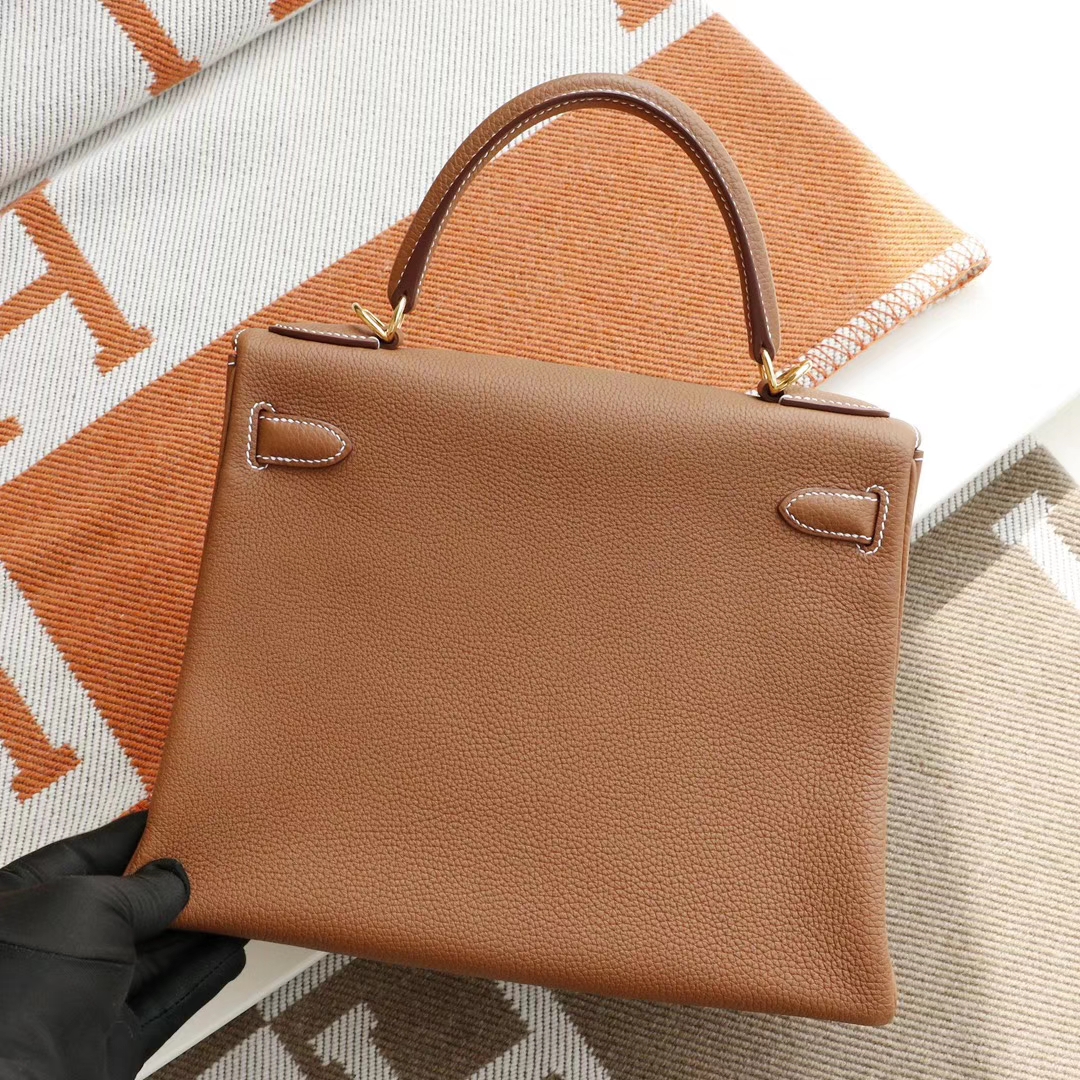 Baiyun Leather City Hermes Gold Brown Kelly 28CM French original factory togo leather Kelly bag hand - stitched craftsmanship
