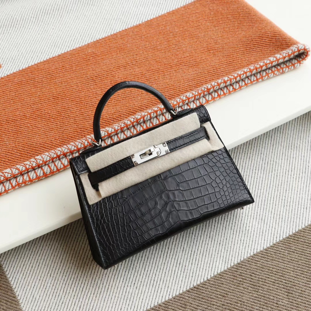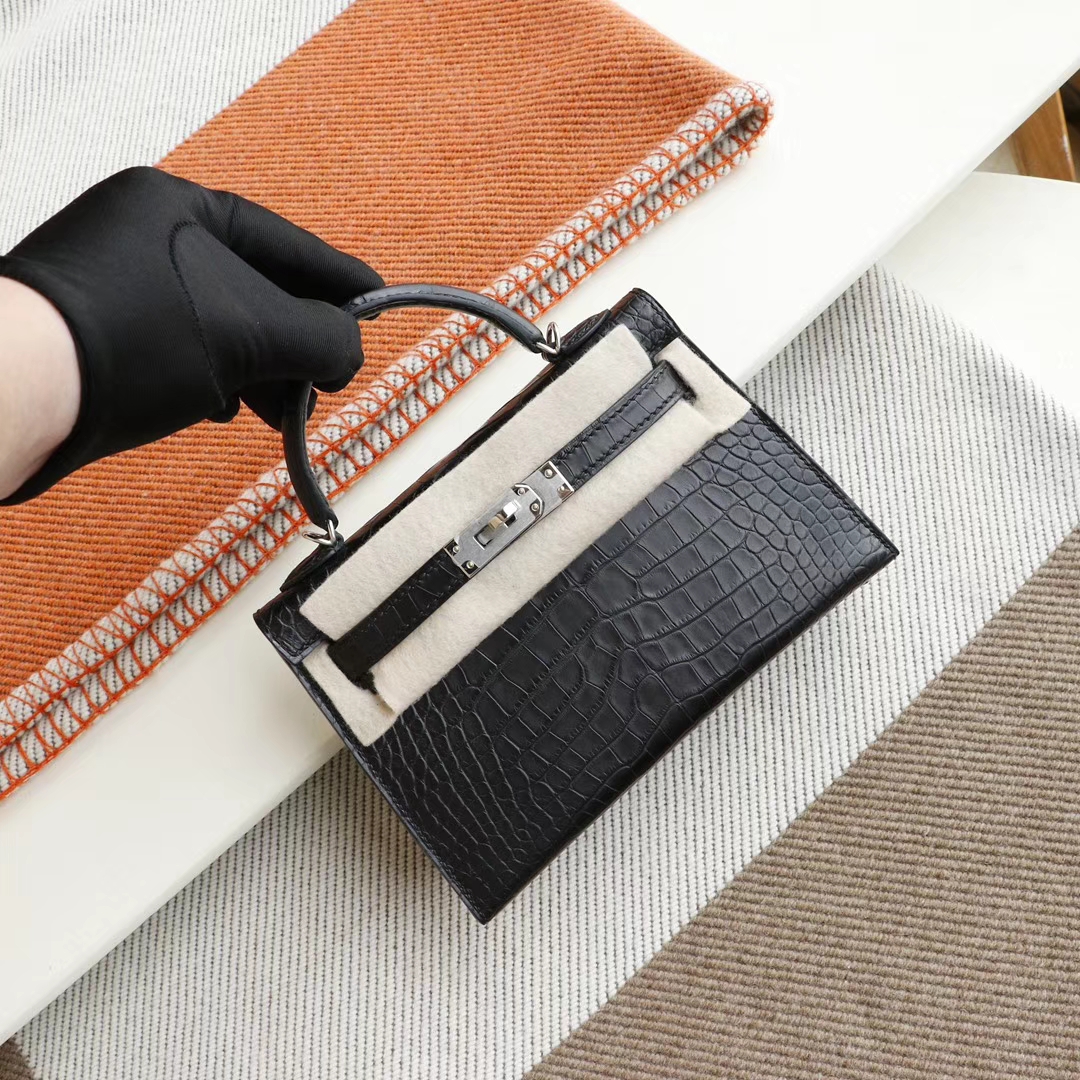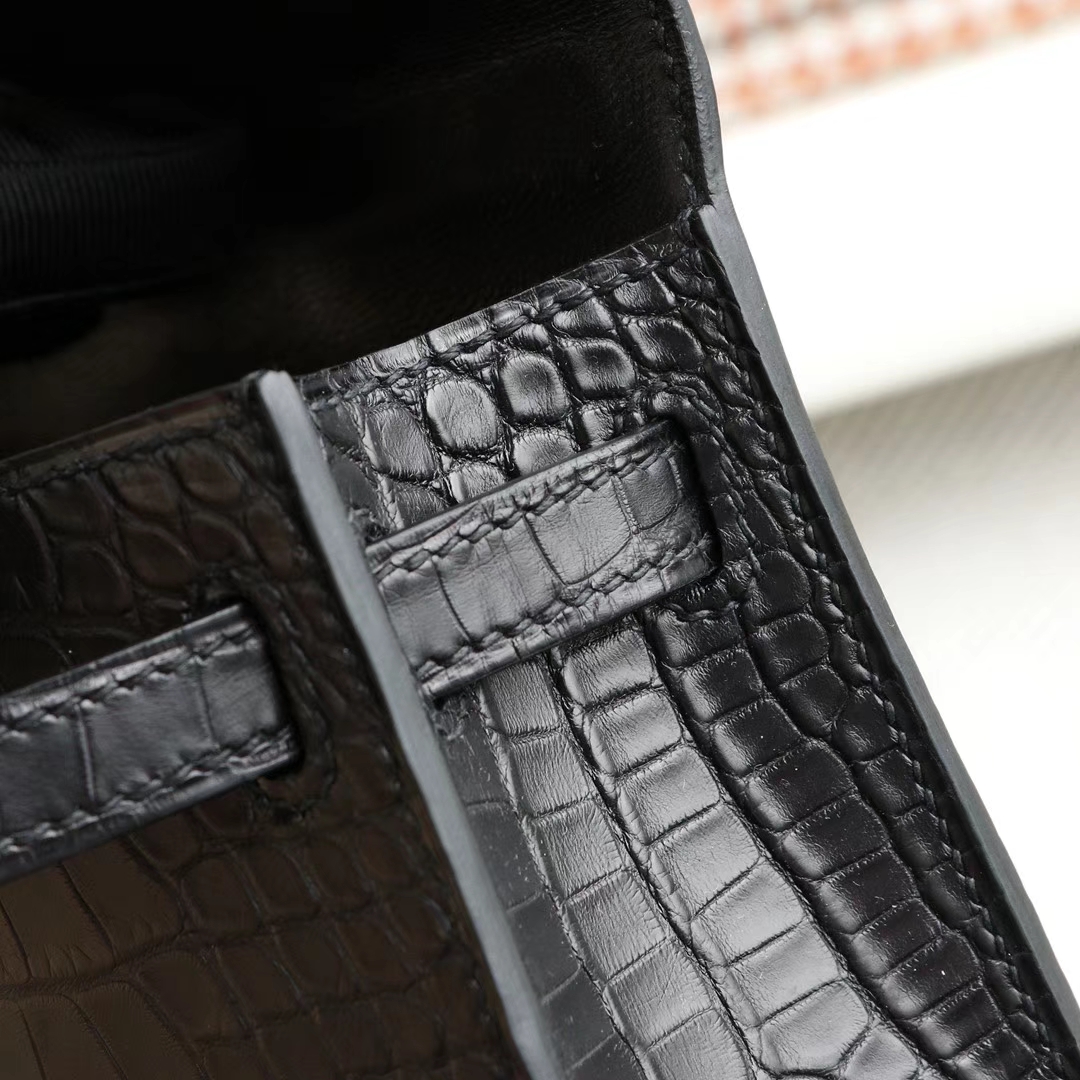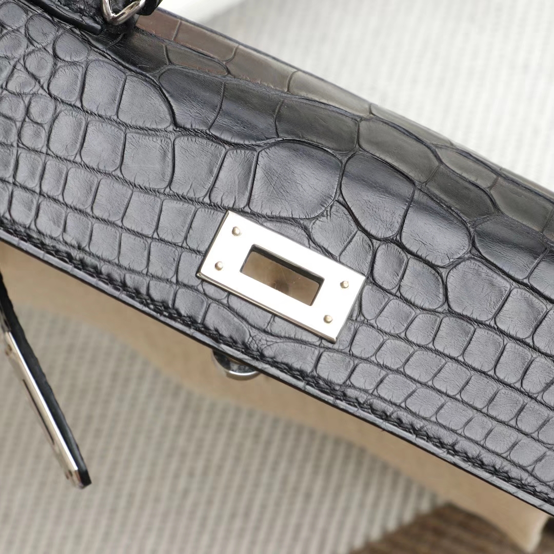Guangzhou bags HERMES CC89 black, silver buckle, Minikelly II, matte alligator mouth engraving, purely hand-sewn
