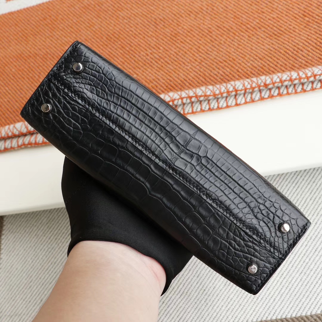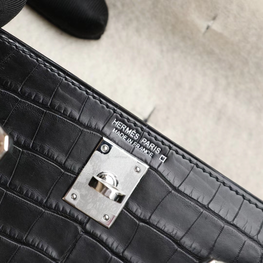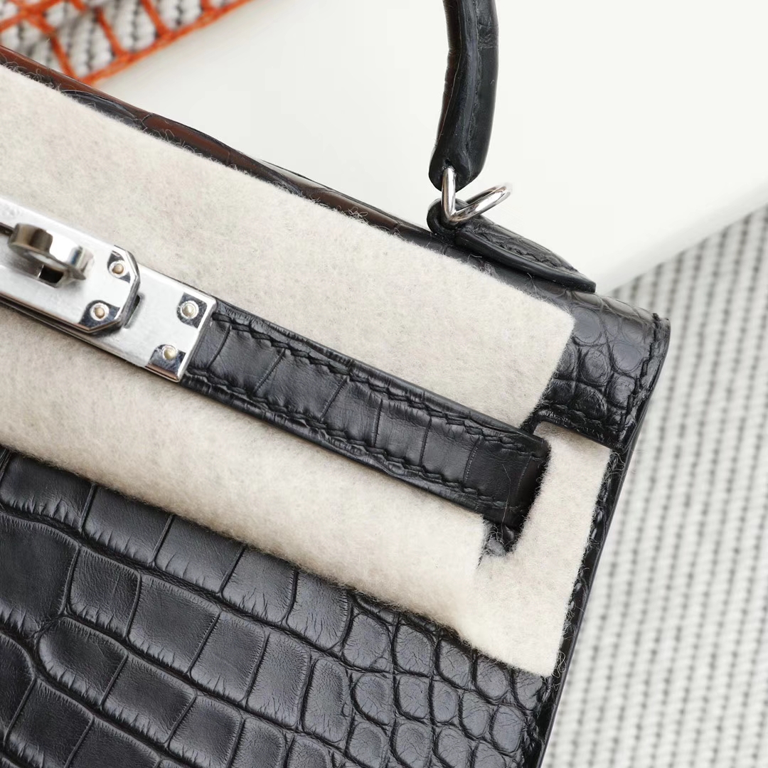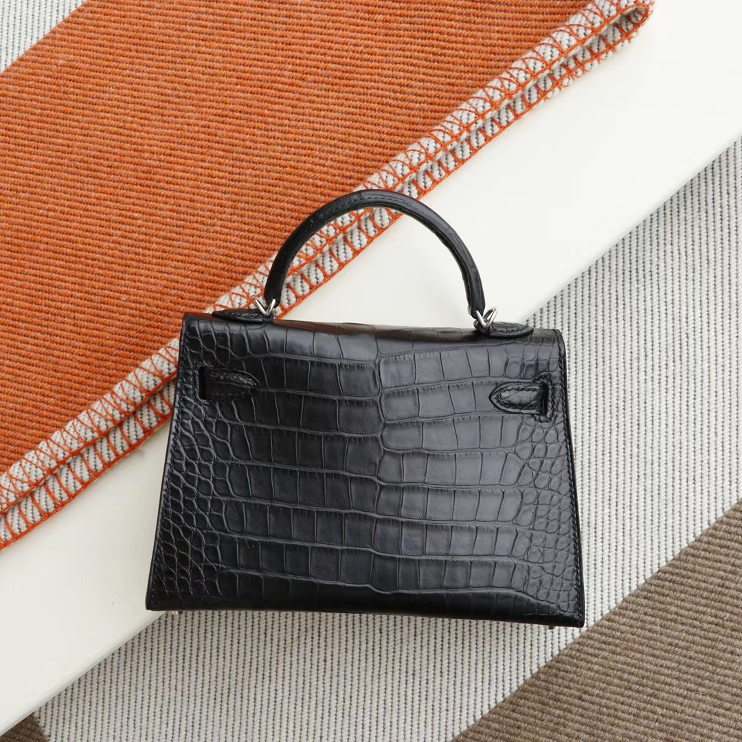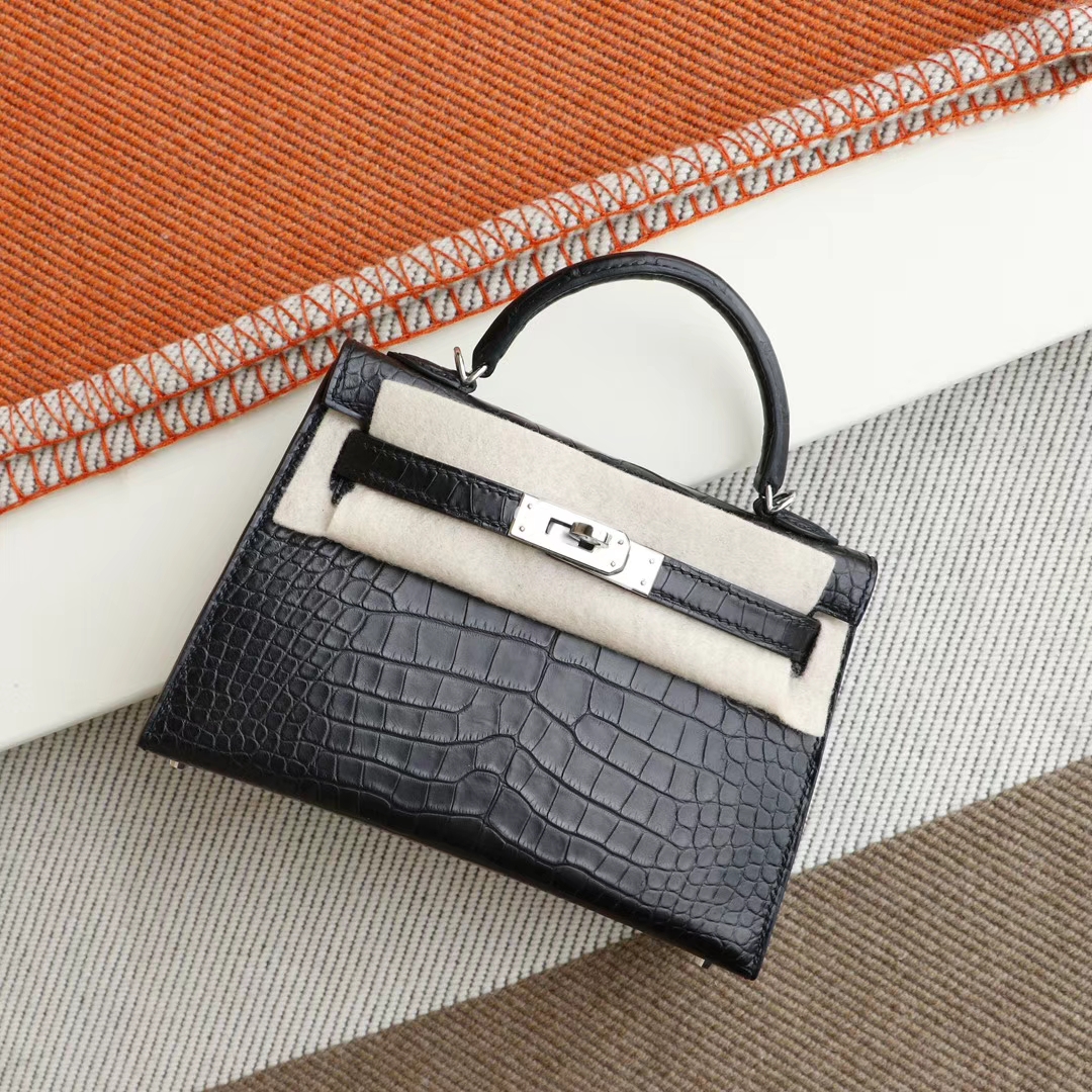 Guangzhou bags HERMES CC89 black, silver buckle, Minikelly II, matte alligator mouth engraving, purely hand-sewn